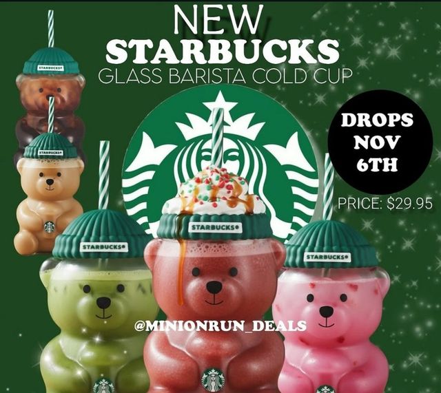 해당 상품은 초록색 모자를 쓴 곰이 스타벅스 로고가 새겨진 컵을 들고 있는 형태의 유리 콜드컵으로, 가격은 29.95달러(약 4만 3000원)다.