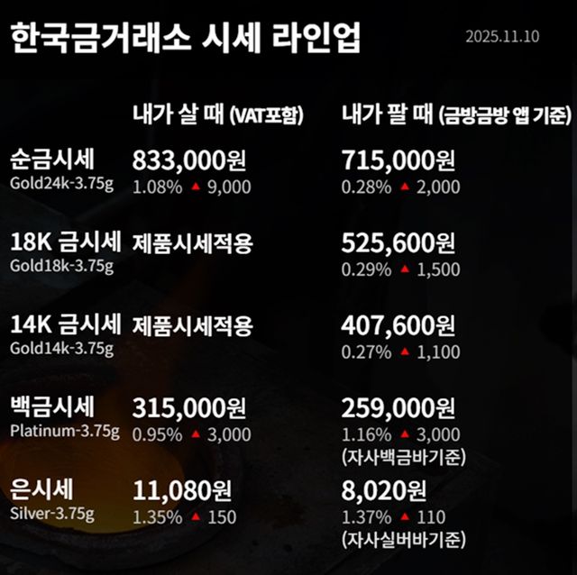 순금 : 매입가 83만 3000원 / 매도가 71만 5000원