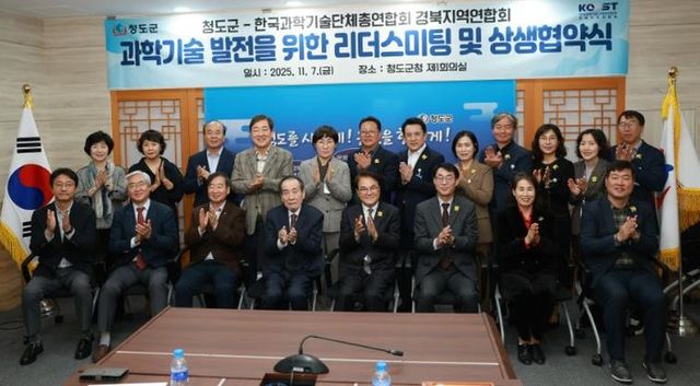 [파이낸셜경제=김영란 기자] 청도군과 한국과학기술단체총연합회 경북지역연합회는 7일 청도군청 제1회의실에서 청도군 간부공무원과 경북지역연합회 임원 등 30여 명이 참석한 가운데 ‘경북 과학기술 발전을 위한 리더스미팅’을 개최했다.
