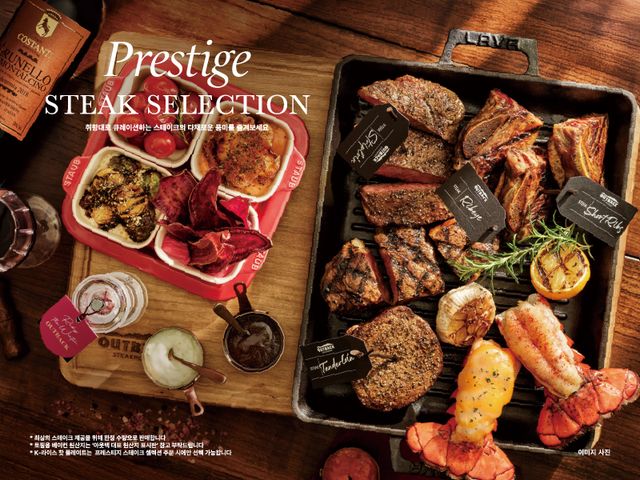 프리미엄 라인인 ‘프레스티지 스테이크 셀렉션’은 꽃등심 스테이크와 탱글탱글한 랍스터 테일 2개를 즐기면서, 4가지 최상급 부위 중 3가지를 고객이 직접 선택하는 ‘맞춤형 럭셔리 스테이크 컬렉션’이다. 와사비 크림의 산뜻함, 치폴레 쌈장의 감칠맛, 루비 시즈닝이 더해진 점도 특별하다.
