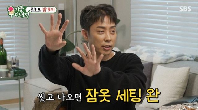 강승윤이 “형 요즘 바이브가 너무 좋아 보인다”고 묻자 은지원은 “훨씬 좋지. 씻고 나오면 잠옷이 세팅돼 있다”며 웃었다. 이어 “자기가 나한테 뭘 해주고 싶어 하는 게 너무 예쁘다. 너무 아내 자랑인가?”라며 쑥스러워해 출연진들의 미소를 자아냈다.