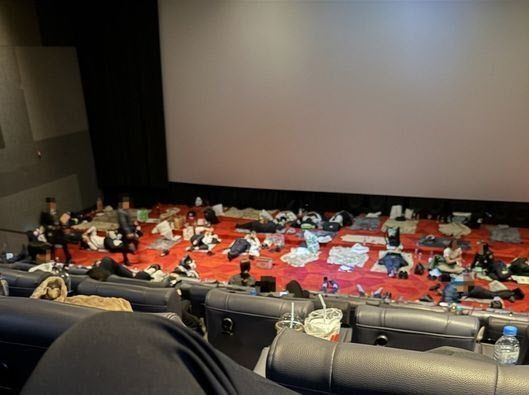 영화관의 대형 스크린 앞에서 단체로 자거나 복도에서 모포 하나만 깔고 잠을 청하는 사진도 공개됐다. 낡은 모텔이나 산속 여관에 묵었다는 증언도 있다.