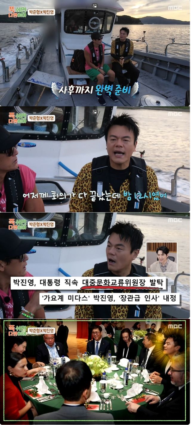 가수 겸 프로듀서 박진영이 대중문화교류위원장 자격으로 APEC 행사에 참석한 근황을 전했다.