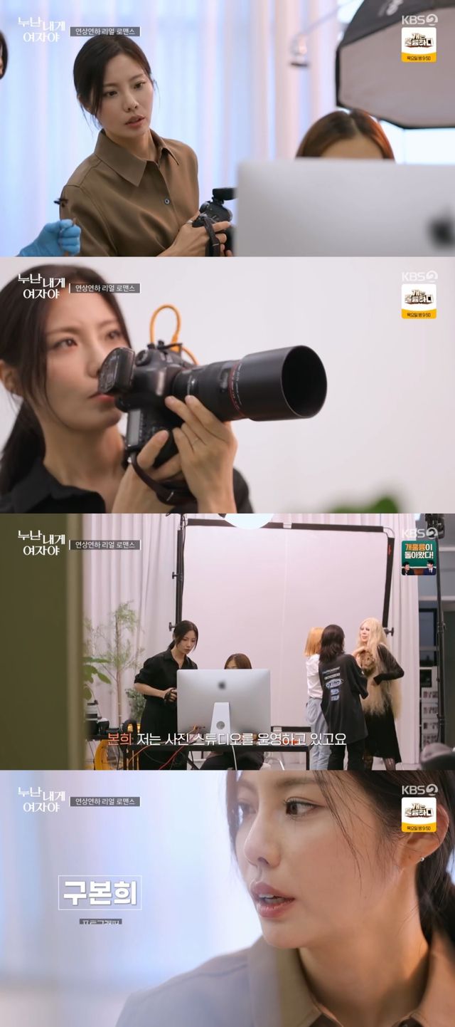 이날 방송에서는 구본희가 현업 사진작가로 일하는 모습도 공개됐다. 그는 “현재 사진 스튜디오를 직접 운영하고 있다”며 “패션 화보, 브랜드 룩북, 드라마 포스터, 배우와 모델 프로필 촬영 등 여러 분야에서 활동 중”이라고 설명했다.