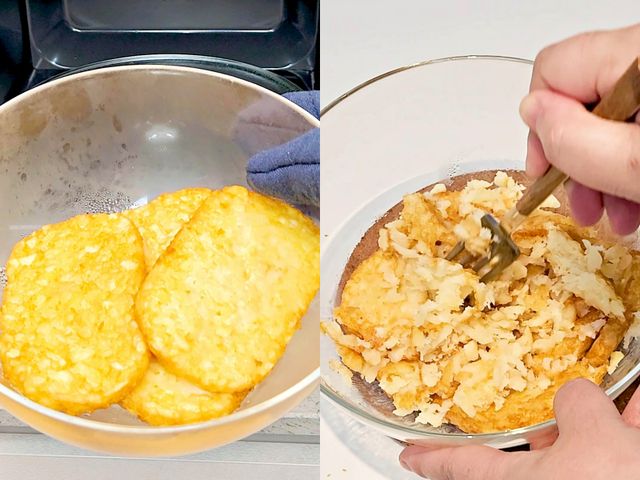 전자레인지에 해시브라운을 잠깐 돌려 부드럽게 만든 뒤