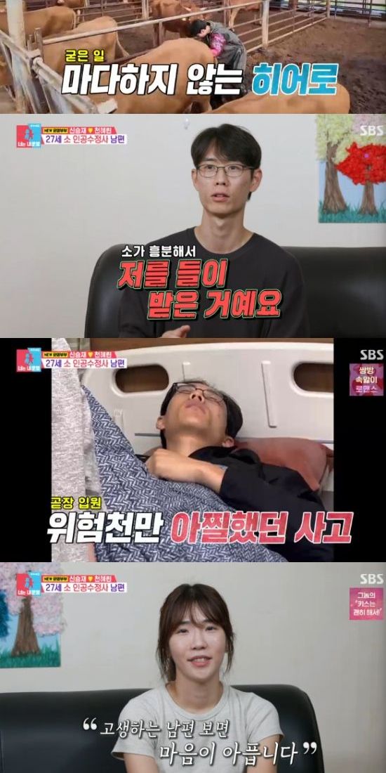 하지만 인공수정을 하면서 위험한 일도 많았다고. 신승재는 "소한테 뒷발로도 차이고, 소가 들이받기도 한다. 밤에 작업을 하다가 소가 흥분해서 저를 들이받았다. 소가 쓰러져있는 저를 머리로 또 들이받고, 발로 밟기도 했다. 그래서 병원에 입원을 했었다"고 말했다.