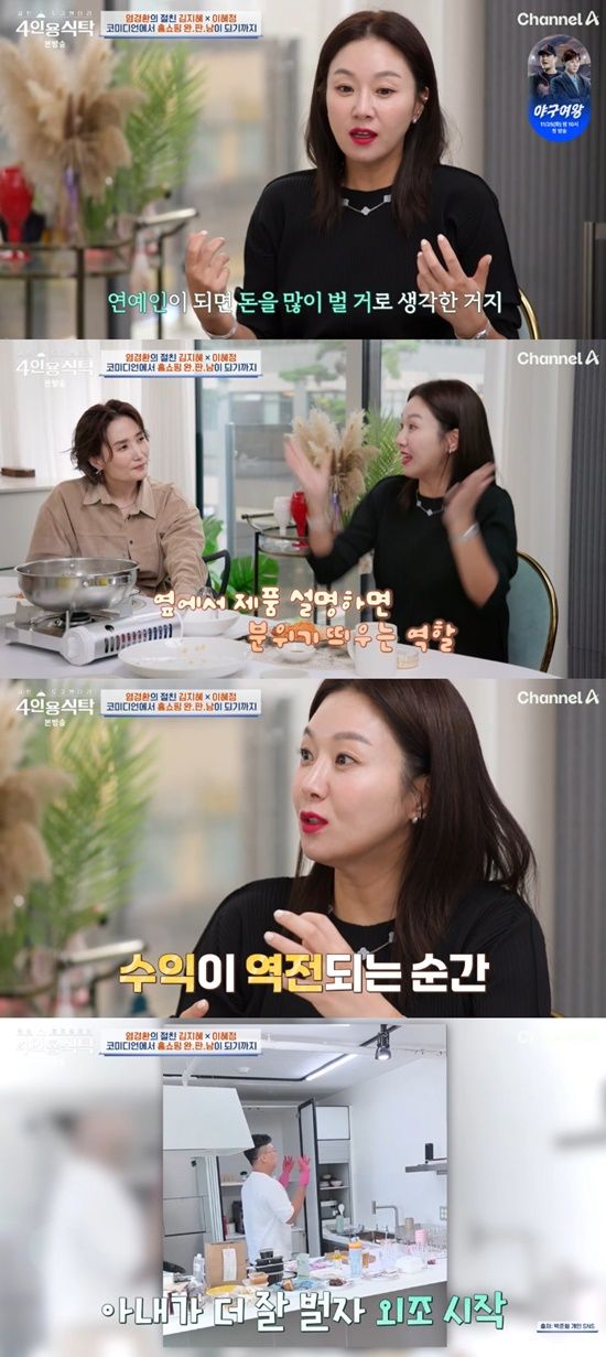 10일 방송된 채널A ‘절친 토큐멘터리 – 4인용 식탁’에서는 홈쇼핑계를 평정한 ‘완판남’ 염경환이 절친 김지혜, 이혜정과 함께 출연했다.