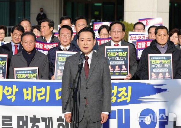 뉴시스 보도에 따르면, 국민의힘은 11일 대검찰청 앞에서 검찰의 대장동 사건 항소 포기를 규탄하고 외압 의혹에 대한 진상 규명을 촉구했다. 국정조사와 특검 등을 통한 이재명 대통령의 탄핵 추진과 정성호 법무부 장관·노만석 검찰총장 권한대행의 사퇴 등을 요구하기도 했다.