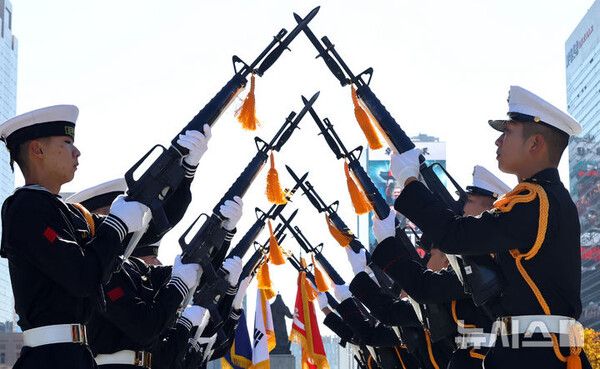 해군은 11일 서울 광화문광장 이순신 장군 동상 앞에서 강동길 해군참모총장 주관으로 제80주년 해군창설기념식을 개최했다.