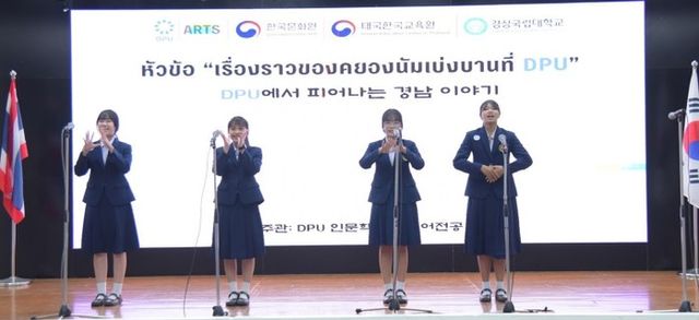 [파이낸셜경제=김영란 기자] 경상국립대학교 국어교육과는 태국 방콕에 위치한 두라키즈푼딧대학교(DPU) 한국어학과와 함께 11월 6일 ‘DPU에서 피어나는 경남 이야기’라는 주제로 제1회 태국 고등학생 대상 한국어 말하기 대회를 개최했다.