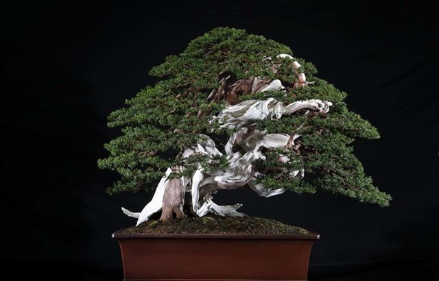 이 분재는 죽어 있는 부분이 1000년이 넘었음에도 썩지 않았으며, 살아 있는 부분 역시 1000년 이상을 견뎌온 것으로 알려졌다. 현재 관람객들에게 가장 인기 있는 작품 중 하나지만, 보호와 관리가 더 필요해 일반 관람객에게는 보호실에서만 공개되고 있다. 조금 더 회복되면 일반에게 공개될 예정이다.