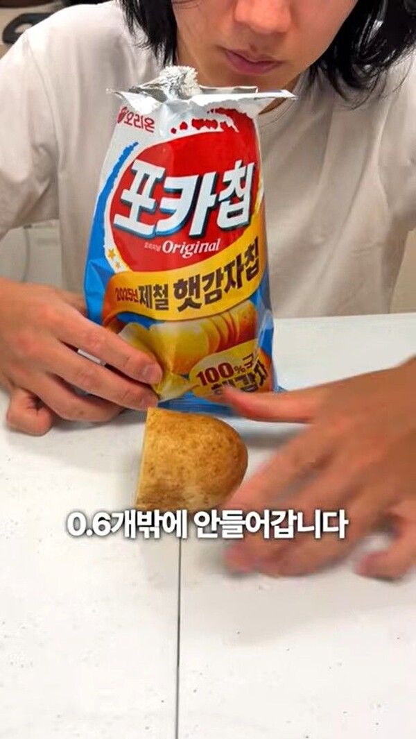 유튜브에 올라온 "포카칩 한 봉지당 들어가는 감자는 0.6개"라는 영상에 대해 오리온 연구원이 "사실과 다르다"며 해명했다.
