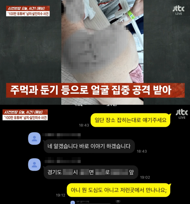 JTBC ‘사건반장’은 유튜버 수탉 납치 및 살인미수 사건을 보도하며 “주먹과 알루미늄 배트로 추정되는 둔기에 얼굴을 가격당했다. 안와 골절, 머리 쪽 다량의 타박상, 복부와 어깨 골절이 의심되는 다량 타박상, 좌측 약지 골절, 얼굴 부위 찢김 등 심각한 상황”이라고 밝혔다.