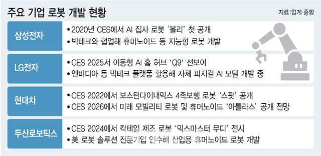 이에 내년 초 CES에서는 두 회사가 변화된 로봇 사업 방향성을 소개할 것으로 전망된다. 삼성전자는 로봇 자회사 레인보우로보틱스를 통해 휴머노이드 개발에 속도를 내고 있다. 최근 미국 빅테크 기업인 엔비디아와 로봇 협력을 강화하고, 엔비디아 로봇 플랫폼을 이용해 지능형 로봇 기술을 고도화하겠다고 밝히기도 했다.
