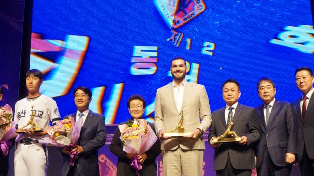 ‘제6회 백송 불굴의 최동원상’은 작년에 이어 교토 국제고가 수상했다. 교토 국제고는 작년 고시엔 우승에 이어 올해도 본선 8강에 오르며 재일동포 사회의 자긍심을 높였다는 평가를 받았다. 백승환 교토 국제고 교장은 “연속 수상에 감사드린다”며 “작은 학교였지만 입학생이 늘고 교육과정도 인정받으며 지역 명문으로 자리 잡겠다”고 소감을 전했다.
