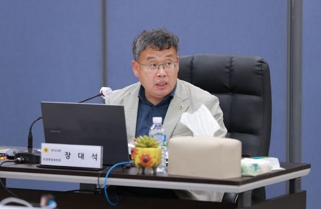 [와이뉴스] 경기도의회 안전행정위원회 장대석 의원(더불어민주당, 시흥2)은 10일 의왕소방서에서 실시된 2025년 경기도의회 행정사무감사에서 숙박시설 완강기 안전관리의 형식적인 측면을 질타하고, 119구급대 3인 1조 탑승률 제고 및 의용소방대 조직 운영 개선을 촉구하며 실효성 있는 안전 체계 마련을 주문했다.