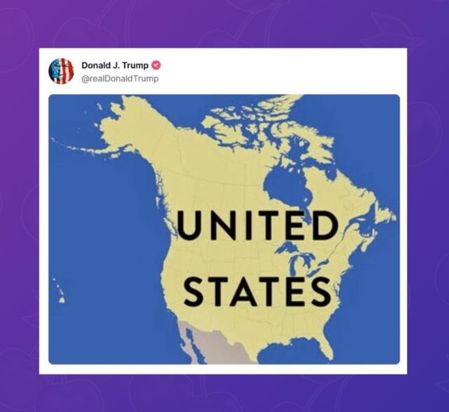 ▲ 트럼프가 자신의 sns에 캐나다를 미국의 영토로 표시하는 도발을 했다.