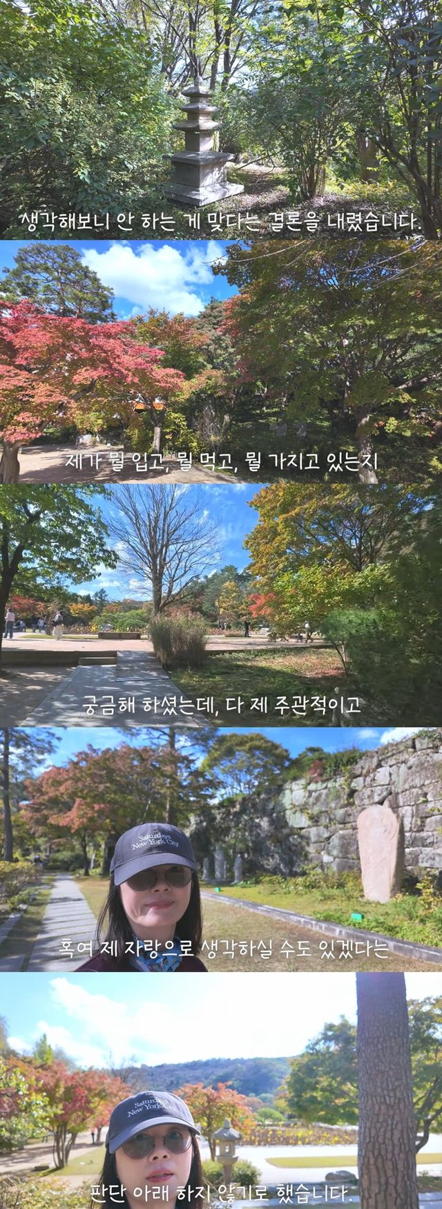 앞으로도 자신이 생각한 방향대로 유튜브를 운영하겠다고 밝힌 오연수는 "혼자 기획하고 혼자 찍고 혼자 글을 쓰다보니 부족한 점도 많겠지만 제 나름대로 정말 고민하고 준비해서 2주에 한 번씩 업로드하고 있다. 저에게는 이게 최선이다"라는 진심을 전했다.
