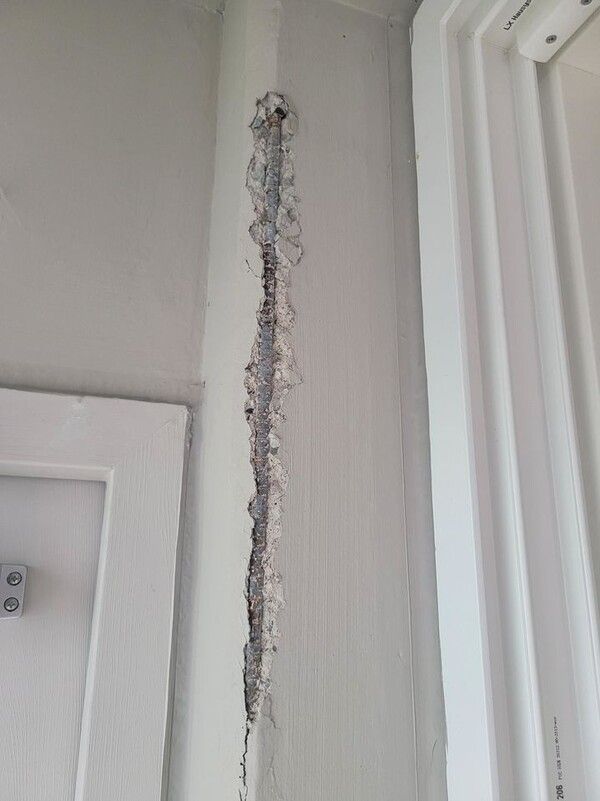 그런데 이후 이 집에는 더 큰 문제가 발생했다고 한다. 벽에서 철근이 튀어나온 것이다.