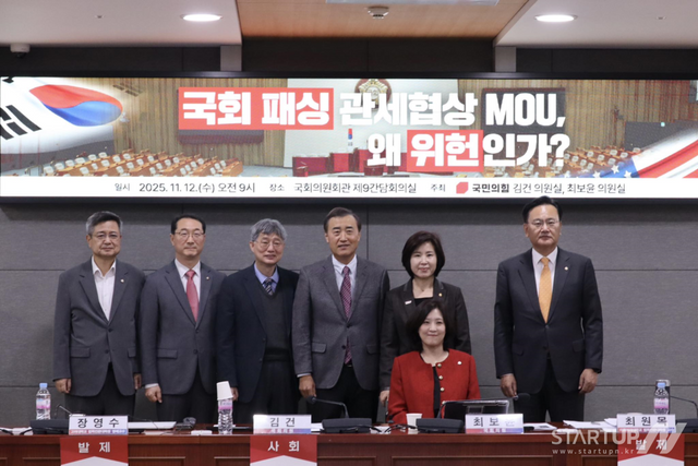 한미 간 관세협상 양해각서(MOU) 추진을 둘러싼 '국회 패싱' 논란이 헌법적 쟁점으로 번지며 정국을 뜨겁게 달구고 있다. 국민의힘 김건 의원과 최보윤 의원은 12일 오전 국회의원회관에서 '국회 패싱 관세협상 MOU, 왜 위헌인가?'를 주제로 긴급토론회를 개최하고 정부의 절차적 정당성 문제를 강하게 비판했다.