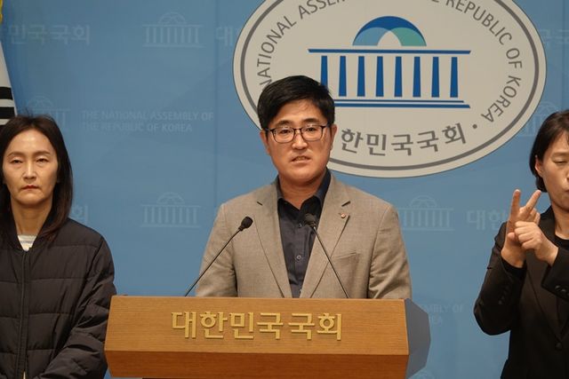 국민의힘 해체행동과 서울의 소리, 고부건 변호사(가운데)는 12일 국회에서 기자회견을 갖고 오영훈 제주도지사, 오세훈 서울시장, 유정복 인천시장, 이장우 대전시장을 내란 부화수행죄 혐의로 고발했다고 밝혔다.