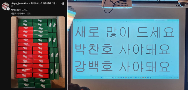 SNS에는 '롯데가 FA에 나설 수 있도록 롯데 제품을 소비하자'는 글이 빠르게 확산됐다. 부산의 한 술집 메뉴판에는 "새로 드세요. 강백호 사야 해요. 박찬호 사야 해요"라는 문구가 등장해 화제가 되기도 했다. 빼빼로데이였던 지난 11일에는 이러한 움직임이 절정에 달했다. 한 팬은 "올해는 롯데 빼빼로를 먹지 않겠다"고 썼고, 또 다른 이는 "기아 팬인 엄마가 빼빼로를 좋아하지만 올해만큼은 안 먹겠다고 했다"고 전했다. 반면 롯데 팬들은 "온 세상이 롯데를 돕는 중"이라며 재치 있는 반응을 보였다.