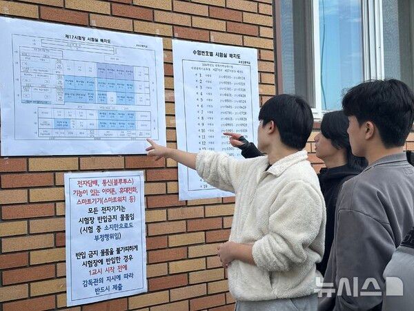 시교육청 로비 안은 시험장 위치를 확인하려는 수험생들로 북적였다. 안내판 앞에 줄을 서서 자신의 고사장을 찾는 모습, 친구와 함께 시험장까지 동선을 점검하는 모습이 곳곳에서 눈에 띄었다.