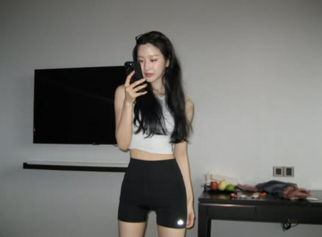 사진 속 배경은 호텔로 보이는 공간으로, 문가영은 흰색 크롭톱과 바이크 쇼츠 차림으로 휴식을 취하는 듯한 편안하고 사적인 분위기를 연출했다.