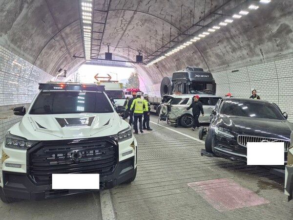 뉴시스 보도에 따르면, 12일 고속도로순찰대와 충남소방본부에 따르면 이날 오후 2시13분께 목격자가 "천안논산고속도로 천안방향 차령터널에서 교통사고가 났다"고 신고했다.