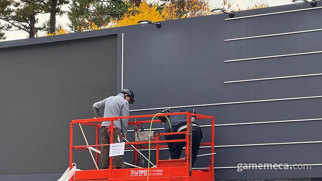 ▲ 외부 부스 준비에 한창이다 (사진: 게임메카 촬영)