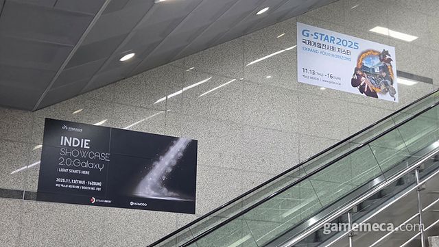 ▲ 벡스코가 자리한 센텀시티역 초입부터 지스타 분위기가 물씬 느껴진다 (사진: 게임메카 촬영)