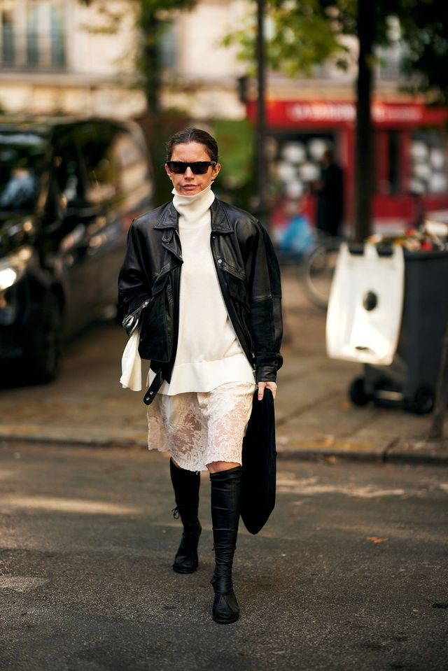빈티지한 텍스처와 화이트 드레스의 조합은 늘 옳습니다. 시간의 흔적이 느껴지는 아이템과 순수한 실루엣이 만나면 룩에 서사가 생기죠. 마치 오래된 영화 속 주인공처럼 자유롭고 낭만적인 에너지가 피어오릅니다. 여기에 내추럴한 웨이브 헤어와 미니백을 더하면 감각적인 여유가 완성되죠다. 거칠고 강한 소재도, 이렇게 스타일링하면 부드러운 감성으로 전환되죠. 이번 시즌, 진짜 멋은 세련된 자유로움에 있다는 사실을 기억하세요!