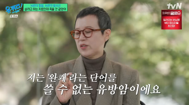그는 “저는 완쾌라는 단어를 쓸 수 없는 유방암이다. 완쾌가 없고, 항상 조심하면서 살아야 하고 검사를 꾸준히 해야 하는 암이다”고 밝혔다. 이어 “그냥 받아들이고 또 생기면 수술하고 치료하면 되니까, 지금은 그런 마음으로 살고 있다”고 담담히 전했다.