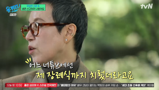 또 그는 “제 근황에 이렇게까지 관심을 주실 줄 몰랐다. 주변 지인들이 방송에 나와서 한 말들이 기사화가 많이 됐다. 유튜브에서는 벌써 장례식까지 치렀더라”고 말해 웃음을 자아냈다.