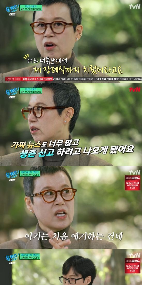 (엑스포츠뉴스 오수정 기자) '유퀴즈'에서 박미선이 힘들었던 유방암 치료 과정을 전했다.