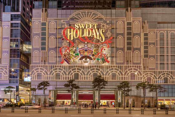 롯데백화점은 올해 조명 스케일로 승부를 걸었다. 본점·잠실점 외벽 전체를 3만 개의 LED로 덮은 ‘롯데타운 크리스마스 파사드’는 저녁이 되면 도심을 거대한 빛의 거리로 만든다. 프랑스 일러스트레이터 나탈리 레테의 따뜻한 일러스트가 낭만적인 감성을 완성했다.