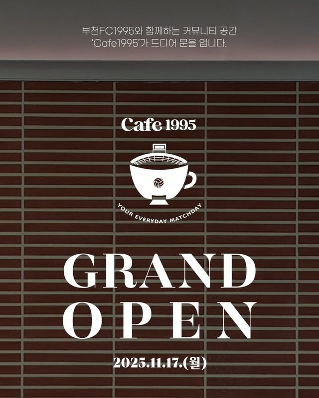 [인터풋볼=신동훈 기자] 부천FC1995(구단주 조용익 부천시장, 이하 부천)가 구단 카페 1호 ‘Cafe 1995’를 개장해 팬과 시민들이 함께 즐길 수 있는 새로운 커뮤니티 공간을 선보인다.
