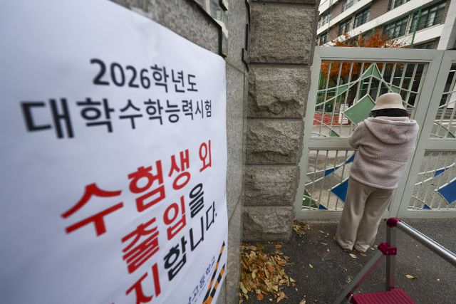 2026학년도 대학수학능력시험이 진행 중인 13일 오전 9시 학교 앞. 문 닫힌 수능 시험장 교문 앞에는 수험생 학부모들의 기도 모습이 연출됐다. 서울 인근 사찰에는 참배 기도를 올리려는 수험생 부모들의 발길이 이어지고 있다.