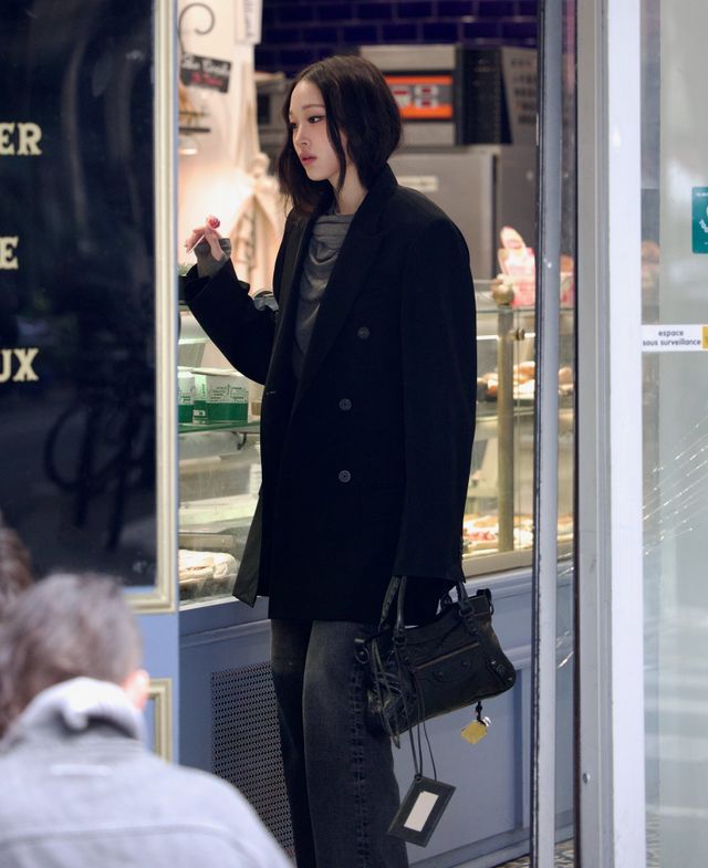 애니는 박시한 아우터와 데님, 혹은 올블랙 재킷 스타일링에 클래식한 블랙 토트백을 매치해 시크한 룩을 완성했다. 빈티지한 실루엣이 돋보이는 미니멀한 디자인의 백을 활용한 그의 쿨한 스타일링은 파리의 감성과 자연스럽게 어우러졌다.