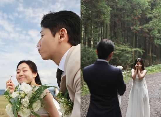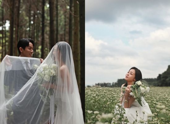 특히 숲속에서 베일을 함께 들고 미소 짓는 장면부터, 꽃밭에서 부케를 든 채 포즈를 취하는 모습까지 러블리한 매력을 자랑했다.
