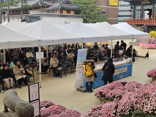 다리를 다쳤지만 손주를 생각해 군포에서 조계사까지 발걸음한 박모(87)씨는 “절을 못해 의자에 앉아서 손주를 위해 기도하고 있다“며 “오늘 수능이 끝날 때까지 있을 것”이라고 말했다.