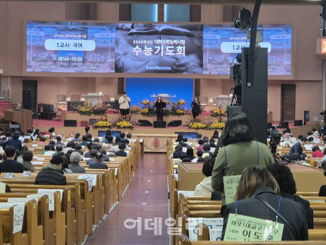 교회에선 ‘2026 수능 기도회’가 수능 시험시간에 맞춰 진행됐다. 기도를 위한 자리엔 학부모·학생 이름과 함께 수험생이 목표로 하는 학과와 내용이 적혀 있기도 했다. 또 ‘떨지 않고 수능을 잘 봐서 경찰대학에 입학하게 해주세요’ ‘집중력이 향상돼 좋은 결실을 맺을 수 있도록’ 등 문구가 자리마다 적혀 있었다.