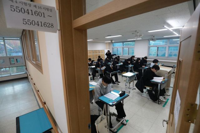 2026학년도 대학수학능력 시험일인 13일 한 고등학교에서 학생들이 1교시 시험을 앞두고 공부를 하고 있는 모습. / 뉴스1