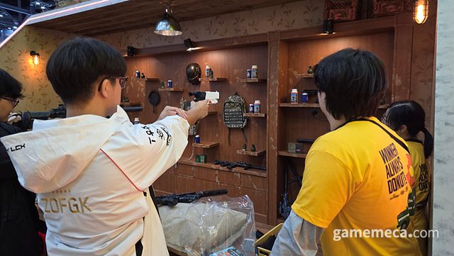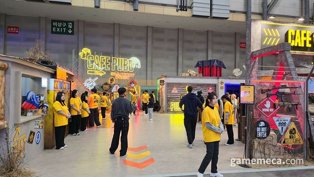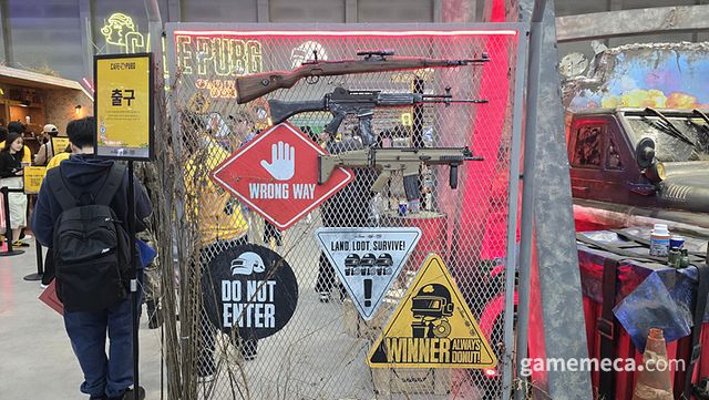 ▲ 배틀그라운드 콘셉트 소품들이 즐비하다 (사진: 게임메카 촬영)