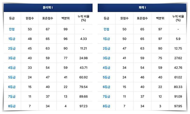 2025학년도 수능 '물리학1' '화학1' 등급컷(2024.11.14 수능) / 메가스터디