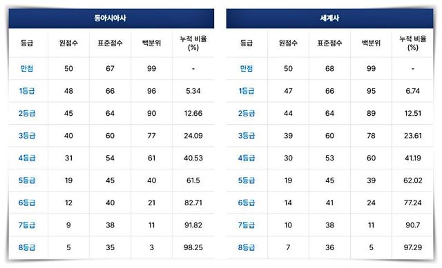 2025학년도 수능 '동아시아사' '세계사' 등급컷(2024.11.14 수능) / 메가스터디