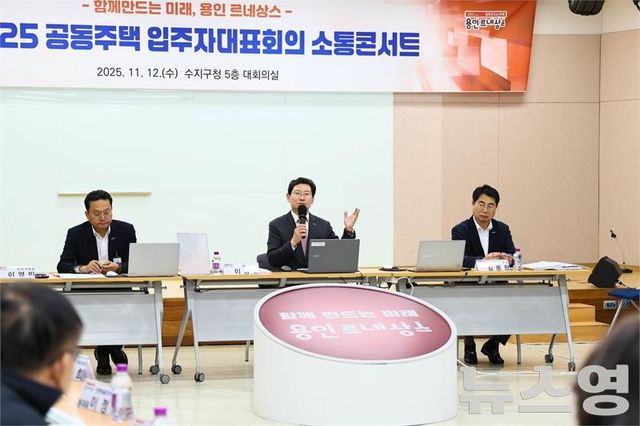 (뉴스영 이현정 기자) 이상일 용인특례시장은 지난 12일 오후 수지구청 대회의실에서 수지구 소재 26개 공동주택 입주자대표 39명과 함께 ‘공동주택 입주자대표회의 소통콘서트’를 열고 단지별 현안과 고충을 논의했다.