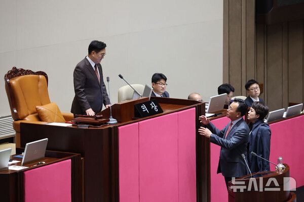 송언석 국민의힘 원내대표는 회의장을 퇴장하며 "국회가 이렇게 행정부 일개 장관에게 흔들리는 모습을 본 적이 없다"며 "김 장관은 국회 본회의장에 나와 사과해야한다"고 했다.