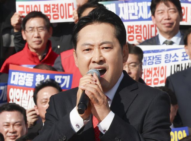 장동혁 국민의힘 대표가 전날 대장동 사건 항소 포기 규탄대회에서 말한 것을 두고 당내 파장이 크다. 장 대표는 13일 소속 의원들에게 “방송에 나가서 비판하지 말고 기다려 달라”고 말한 것으로 알려졌다.