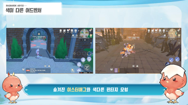 ‘라그나로크 어비스’ 선상웅 사업 PM은 “게임 내 필드에서 다양한 퍼즐 기믹을 풀어내는 등 탐험으로만 얻을 수 있는 요소가 다수다”라며 “코스튬의 경우 탐험 내에서만 얻을 수 있는 것을 포함해 각종 콘텐츠 전반에서 코스튬을 획득할 수 있도록 준비 중이다”라고 전했다.